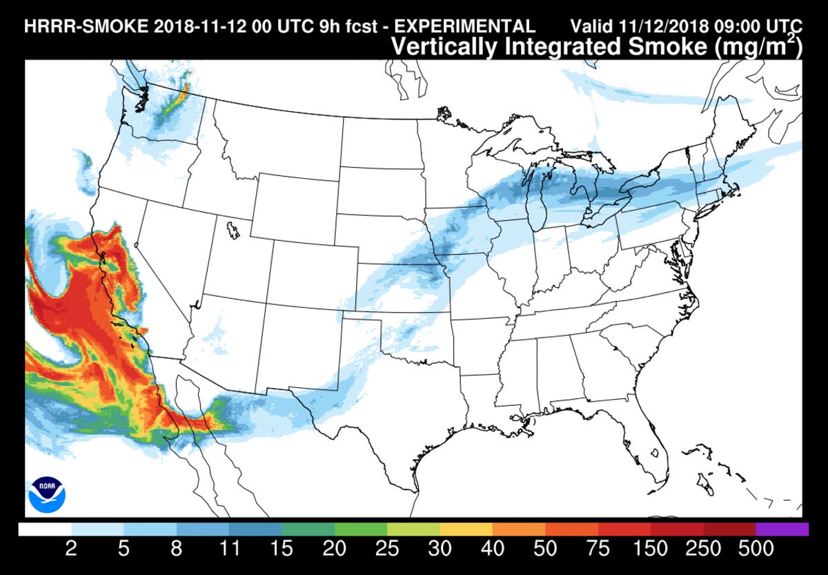 The smoke has made its way east, thousands of miles from where the catastrophic fires have killed at least 31.