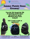 · July 25th through July 28th all platelet donors will receive a special MGH Blood Donor Center backpack