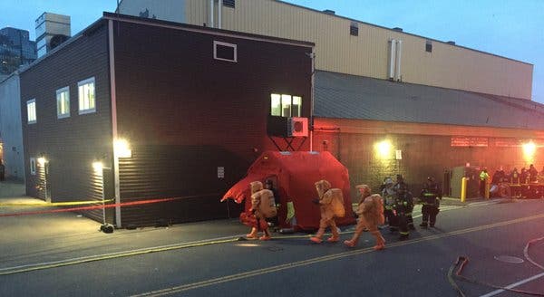 The incident was declared a level 3 hazmat situation and firefighters donned full-body protective gear as they entered the building.