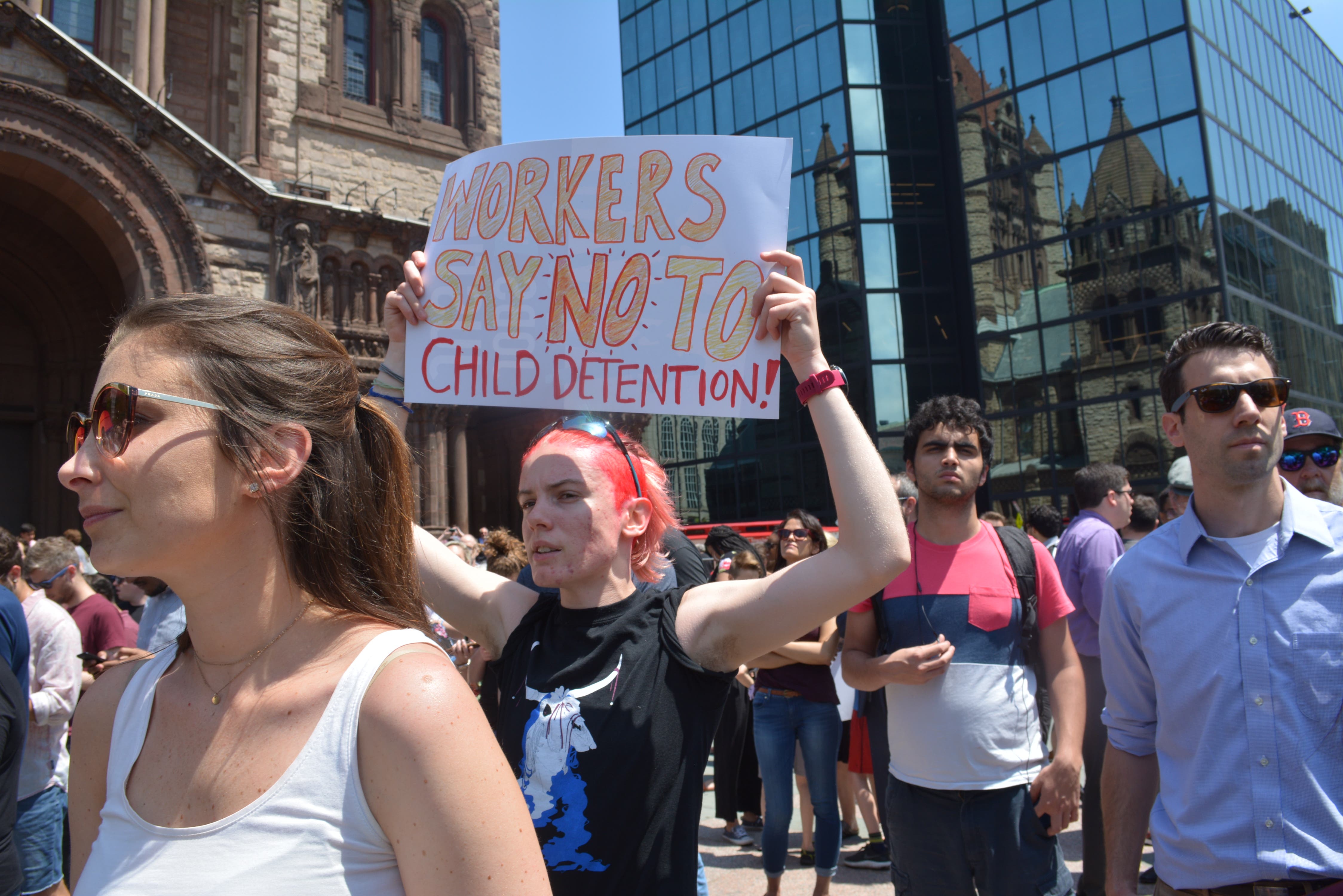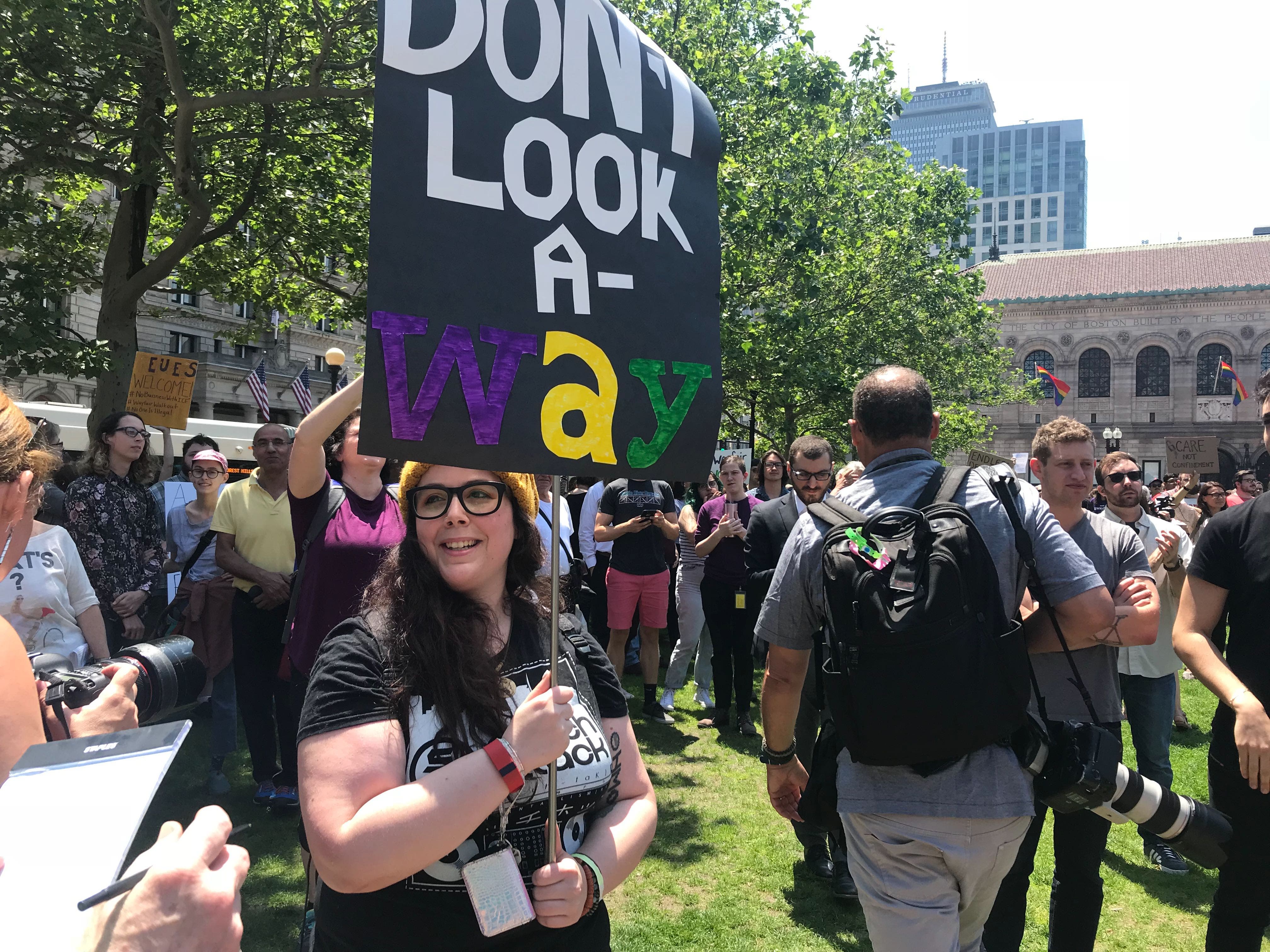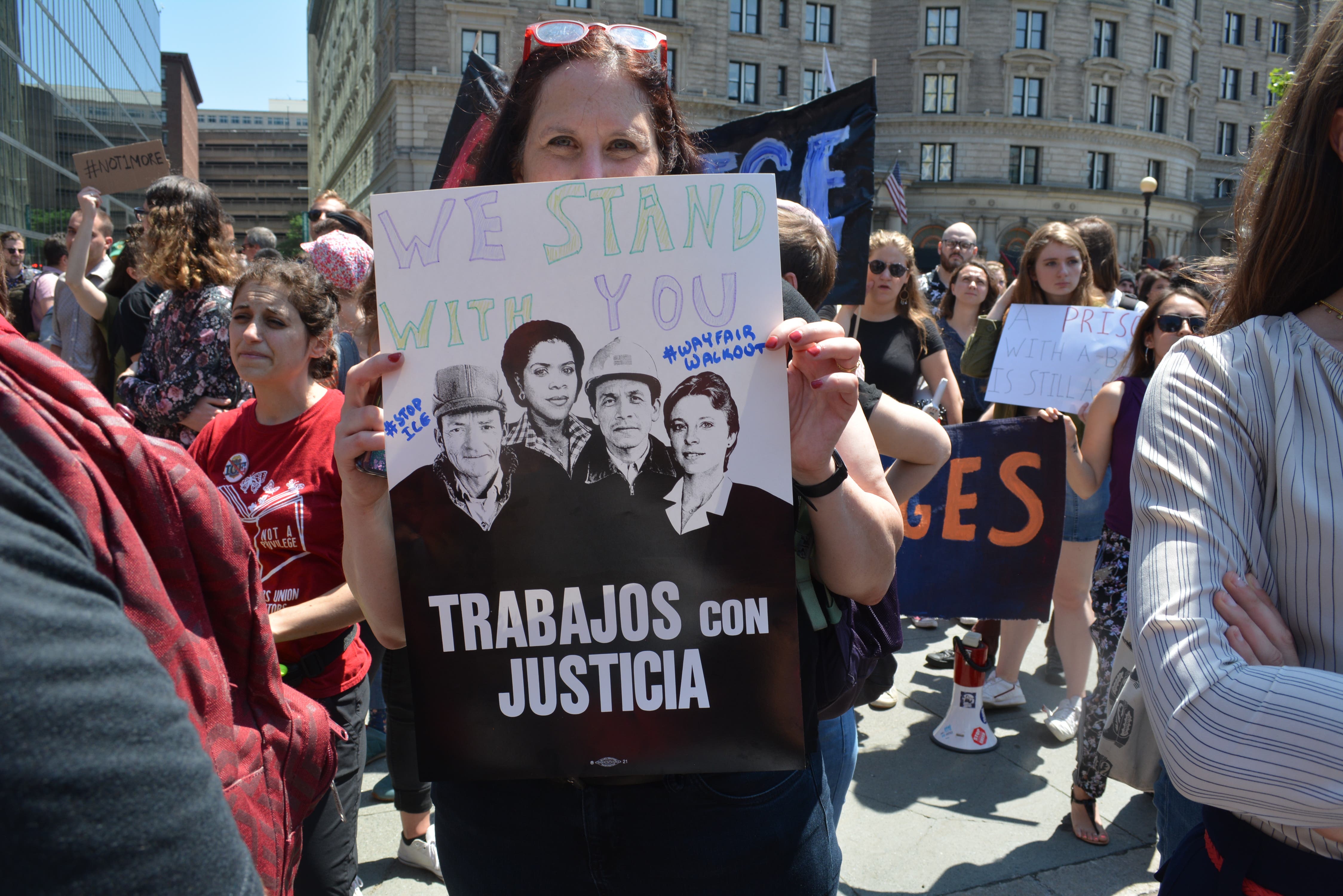 While most of the Wayfair employees either blended into the crowd or stood in solidarity on the fringes of the protest, a vocal handful took to the microphone and called for action from the company. Wearing her company T-shirt, Wayfair engineer Kayla Smith told the crowd how shocked she was to hear of the company's decision to continue business with the centers.