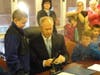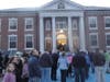Dozens of Braintree residents gathered at on Monday evening to celebrate Autism Awareness Day both globally and locally with an official proclamation by Mayor Joseph Sullivan and a blue bulb lighting in the building's front windows.