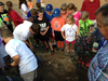 Many of the children who attended the event scrambled over the play area, including a stone chess set and swingsm after the ribbon was cut, but not before helping release dozens of balloons and butterflies and planting a Japanese Maple donated by the Disney Store.