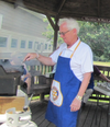 We’ve found him a job, flipping hamburgers at the Braintree Senior Center for the Department of Elder Affairs Annual Cookout.