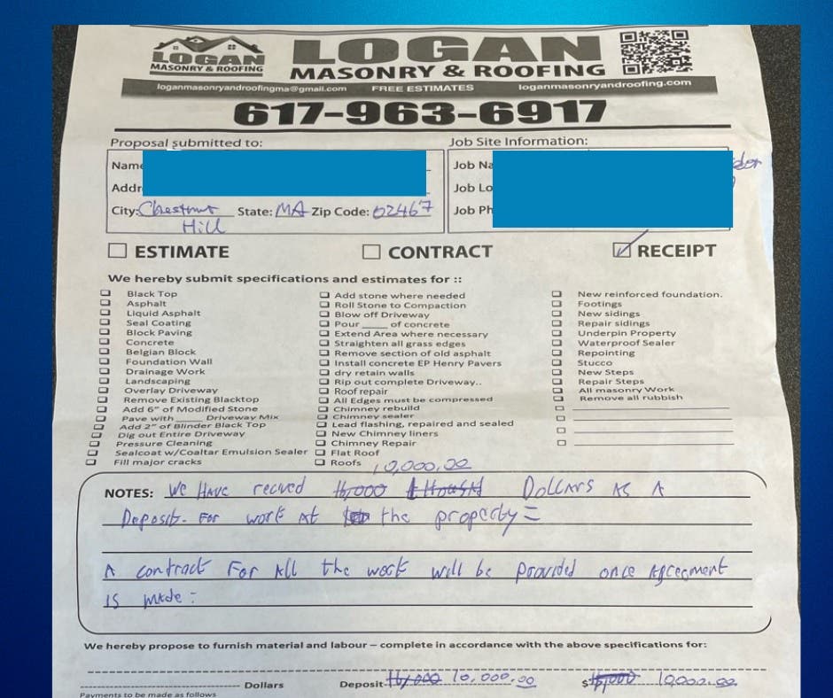 BROOKLINE, MA — Brookline police are asking that any homeowners who believe they may have been victimized in a recent home improvement scam contact them after two people were charged in a scam involving fake estimates and intentional damage done to properties.