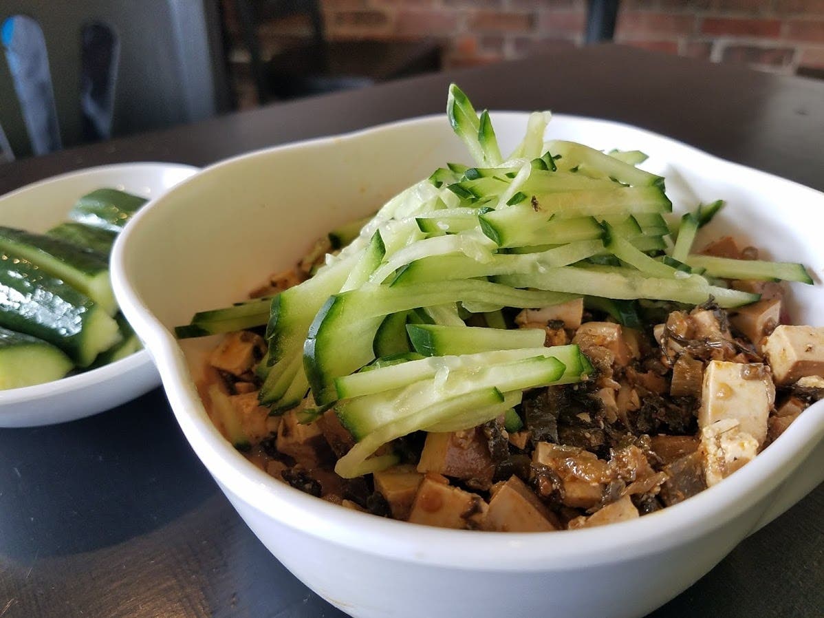 But she was ready to make a change after 27 years working as a personal shopper for upscale stores and fancy ladies. She didn't know exactly what that would look like. But she knew she wanted to own her own business. She had an agent on a search looking for small spots. And then she was having food with some friends, she remarked that they were always making food that was restaurant ready and delicious. You should start a restaurant she told them. They brushed that thought aside, but then she thought, "why don't I start a restaurant?" That stuck. She convinced her friends to teach her how to make fresh Jiang Nan style noodles and small bites - comfort foods from her childhood. And then she convinced them to help cook at the restaurant. It was a 180 from the retail work she'd done on Newbury Street. And she loved it and had a knack for it. What do the two have in common? She's learned to be flexible. About three months in after people kept coming in asking for vegetarian options she sat down and worked out vegetarian options.