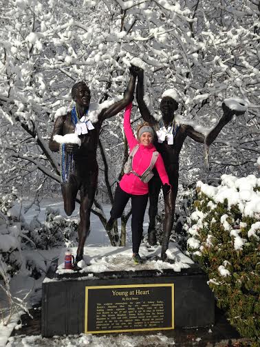 On running with a group: "I think in general I push myself harder. They are all a dedicated, fun group of people and its very inspirational. I really like when we get to run in costume; we once did a superhero run and another one around Easter where we dressed up like bunnies and chicks."