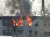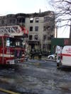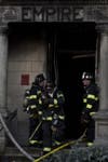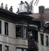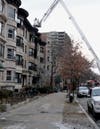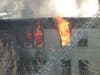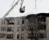 Crews are still on scene at the Empire apartment building Monday afternoon, cutting holes in the roof of the four-story building and putting out hot spots.