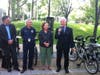 Standing in front of the map and kiosk on the machine, the full Board of Selectmen was joined by Dr. Alan Balsam of the , and Robert Raymond, a Senior Architect/Planner at Partners Healthcare--one of the Brookline sponsors for the bike program.