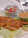 Those entrees made up for the rather underwhelming appetizers. Thai Rolls ($4.95), petite, crispy logs filled mostly with chicken, celery, and cabbage, lacked interesting flavor even when dipped in their clear, sweet sauce. Skewered chicken Satay strips ($6.95) were too salty to my taste, the meat slathered inelegantly with sauce instead of infused with marinade, making the accompanying peanut and cucumber sauces entirely redundant.