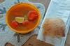 Also available are a number of rotating soup choices, which owner Marjorie Druker selects from her repertoire of hundreds of soups, chowders and stews. Popular offerings include Tomato and Crab Bisque, Hearty Beef Vegetable and Greek Orzo Lemon and Chicken, while recent choices have included Pasta e Fagioli and the intriguing Carrot Honey Ginger with crème fraiche. Each bowl of soup is $4.25 (a bit more for chili and chowder) and comes with a soft-on-the-inside, crispy-on-the-outside multigrain or French roll.
