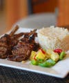 Tender steak tips are marinated in lemongrass and ginger, and cooked with a gentle touch. They're accompanied by a mound of coconut rice that's fluffy yet rich, and several quarters of charred tomato that seem oddly out of place both on the plate and in the flavor scheme.