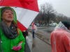 Kasandra French, a running coach and blogger at "The Lone Runner," was outside complete with wet jeans and gloves she'd dropped in a puddle. She remembers running Boston the last time it was a rainy slog (2015) and she feels for the runners today. Though the conditions were cruddy - rain and even sleet - she still wore a smile.