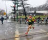 French said she was tracking some 20 runners, waiting in the sloppy weather with some enthusiasm. She also had a set of lungs on her. "You're doing great!" she shouted to some of the elite runners.