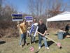 The atmosphere outside the polls was enthusiastic but civil as supporters for the different candidates enjoyed the nice Spring weather as they stood holding signs and waving to voters as they arrived.