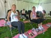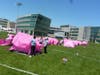On Saturday night many women slept at Reebok Village in hot pink tents. By the end of the day Saturday, hundreds of tents were pitched on Reebok's lawn.
