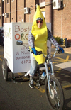 John helped the Warren-Prescott School (K-8) in Charlestown set up a school garden. These kids were excited to get their hands dirty!2. A drone wouldn’t dress up like a banana for Halloween while making deliveries on a cargo bike: