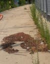 It seems that no one is taking care of the new walkway that goes to theย Paul Revere Parkย that runs along the Tobin Bridge on ramp, the one with the striped pole lights.