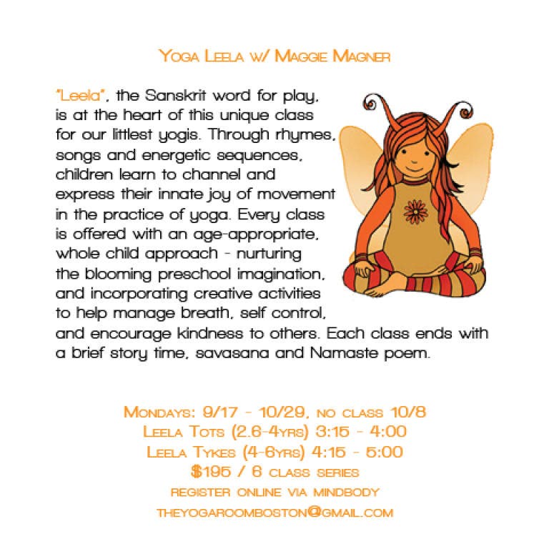 “Leela”, the Sanskrit word for play, is at the heart of this unique class for our littlest yogis. Through rhymes, songs and energetic sequences, children learn to channel and express their innate joy of movement in the practice of yoga. Every class is offered with an age-appropriate, whole child approach - nurturing the blooming preschool imagination, and incorporating creative activities to help manage breath, self control, and encourage kindness to others. Each class ends with a brief story time, savasana and Namaste poem.