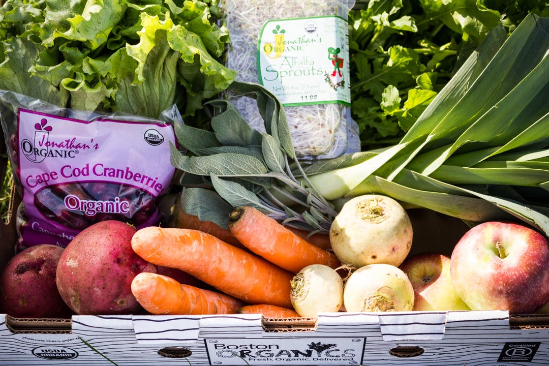 The Boston Organics Local Dogma Box includes organic fruits and vegetables sourced as close to Boston as possible all year long.