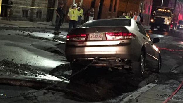 Large Sinkhole Nearly Swallows Car in Boston