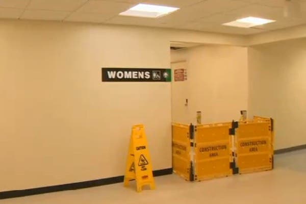 Police said at about noon, Shenk went into a ladies restroom in the upper level of Terminal C. He then took off his clothes and climbed into a drop ceiling, but fell through and cut himself all over his body. He then fled the restroom.