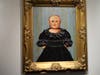 "Anna Maria," a mixed media painting by Joe Trepiccione, startling in its clarity, is a portrait of a child in a long black dress which is built out with a ruffle extending into space. Trepiccione said his original intent was to paint a primitive picture of a child, but the art work evolved instead into a work with more European roots, perhaps 18th Century Spain.