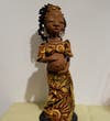 Maryann Broxton is exhibiting a different kind of doll. There are three: "Mother," "Massi" and "Sunday Dress," African dolls made of sculpty clay, cloth and recycled materials. Their bodies are made from Coke bottles with baked clay (baked in Broxton's kitchen oven) molded on to form the torso. The heads were made separately, then slipped onto the trunk. Broxton said that when her children were younger she made them rag dolls and, a year ago, she began to make clay dolls as gifts.