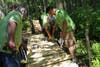 Kronos held a community service day at Roberts Field in Chelmsford to build a nature walking trail bridge and plant a new pollinator garden.