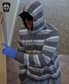 Police have released images of the suspect and are seeking the public's help in identifying him. The suspect is believed to be a white male, about 6 feet tall, with facial hair. During Wednesday's robbery, the suspect wore a gray and white striped hoody. He has worn a black flat-brim hat, sunglasses, and latex gloves during all three robberies.
