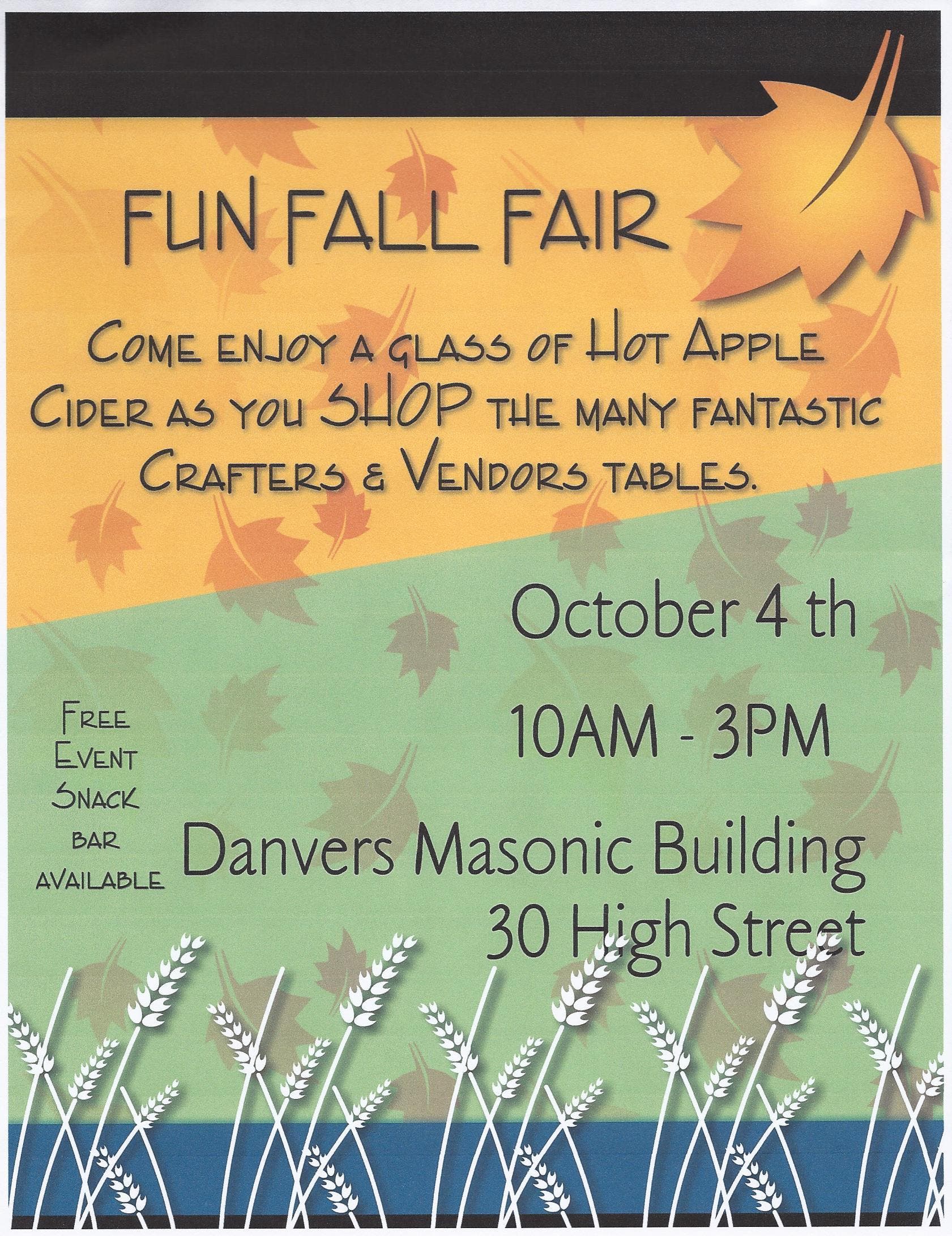 Danvers Masonic Fall Craft and Vendor Fair this Saturday from 10-3pm sponsored by the D.M.T.A