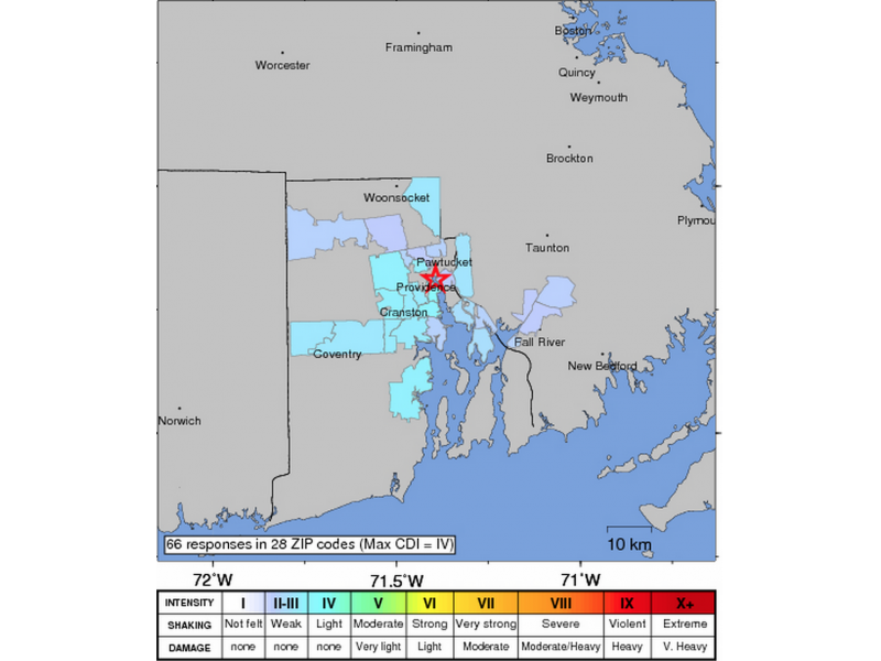 The quake may have also been felt in Providence, East Providence, Coventry and Woonsocket.