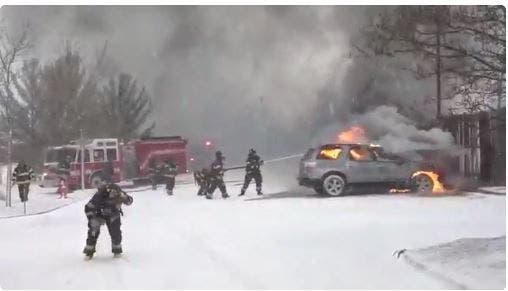Dedham Fire Battles Car Blaze