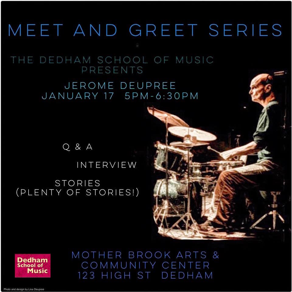 The Dedham School of Music will host Jerome Deupree, drummer for the historic band Morphine, in an exclusive, intimate Q and A session.
