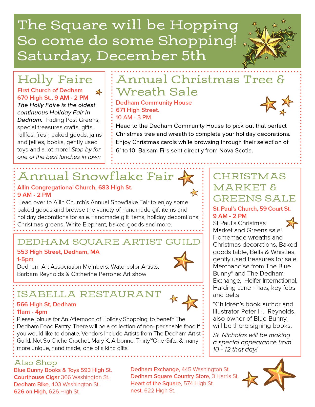 Dedham Square will be Hopping So come do some Shopping! Saturday, December 5th