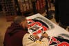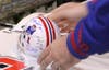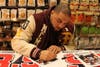 The star NFL player inked his name to mini helmets, team yearbooks and photos of himself for adorning supporters.