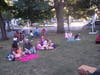 Porcino laid out his arsenal on a blanket, which he referenced between rudimentary, yet attention-demanding tales and continuous audience interplay. When the time came for him to unveil his so-called "baby guitar," virtually every kid previously seated on the blanket-and-family-covered lawn jumped at the chance to demonstrate their ability to identify the instrument as a ukulele.