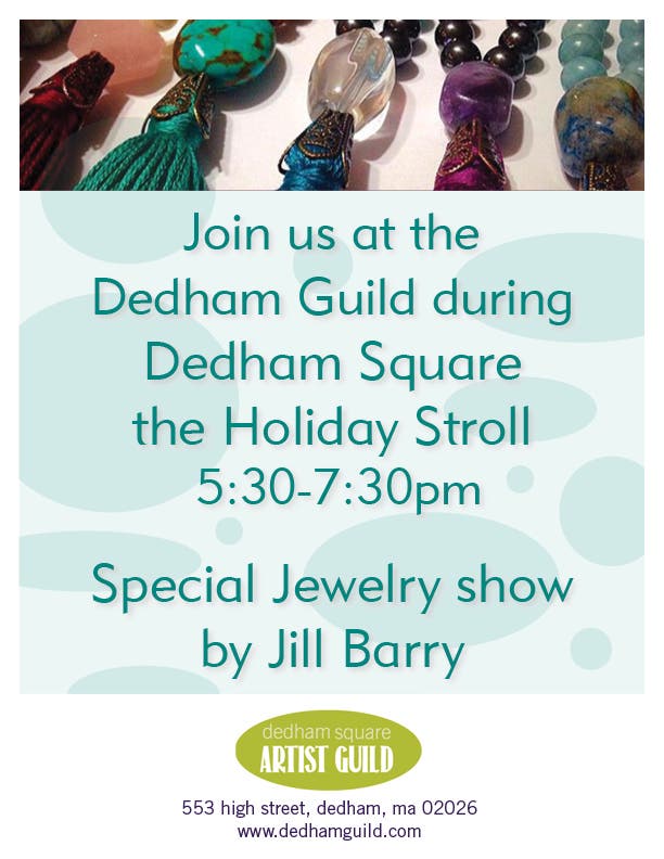Visit the Dedham Square Artist Guild for a special Jewelry show by Jill Barry and enjoy this holiday kick-off event