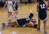 Kelly added a 3-p[ointer and freshman Lauren Dillon had the play of the game as she stole the ball and dove on the floor to secure the ball and made a beautiful bounce pass from her back to a streaking Kelly for an easy lay-up to put Nobles up 18-2.