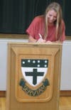 On Thursday, November 15, Kristen signed her letter of intent to join the Aztecs women's lacrosse team next year. Her mother, Karen Hickey, and Marisol Henderson, the UA lacrosse coach, joined Kristen for a letter-signing ceremony in the Ursuline gym. Kristen is a three-sport athlete at UA, and her teammates from soccer, basketball and lacrosse also came to the ceremony to cheer her on.