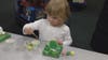 When her mother, Lucy, described Katie’s butterfly as pink and green with sparkles, Katie chimed in, “Oh, I have one more color, yellow” and off she went back to the paint table.