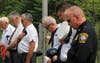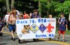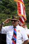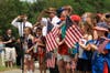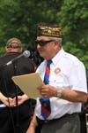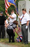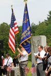 Members from the American Legion led the way in the parade, handing out flags to observers who sat in lawn chairs or on stone walls along Depot Street. Ernest Camara of the VFW directed the ceremony, which consisted of a prayer and a Pledge of Allegiance.