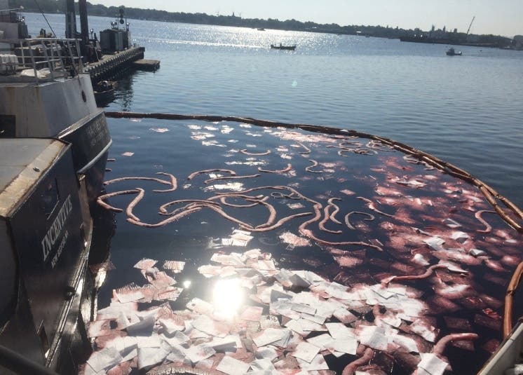 NEW BEDFORD, MA — A boat sank in New Bedford Wednesday and leaked potentially thousands of gallons of fuel in the water. The Coast Guard reported the incident and said potentially 7,000 gallons of marine fuel leaked into the water as a result of the sinking. Booms were set up to contain the spill.