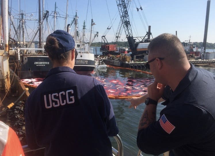 "A crew from Marine Safety Detachment New Bedford arrived on scene, along with crews from New Bedford Fire and Police departments, and Massachusetts Department of Environmental Protection and double boomed the vessel," the Coast Guard said in a statement.