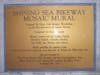 Indeed, the Shining Sea Bike Path mural proved to be a major team effort. Using what is commonly known as the “double direct method,” which allows the artist to trace the mosaic over a drawing of it (usually referred to as a “cartoon” by mosaic artists) directly onto fiberglass mesh. They then cut the finished project up into separate pieces in order to transport it to its intended location before reassembling it.
