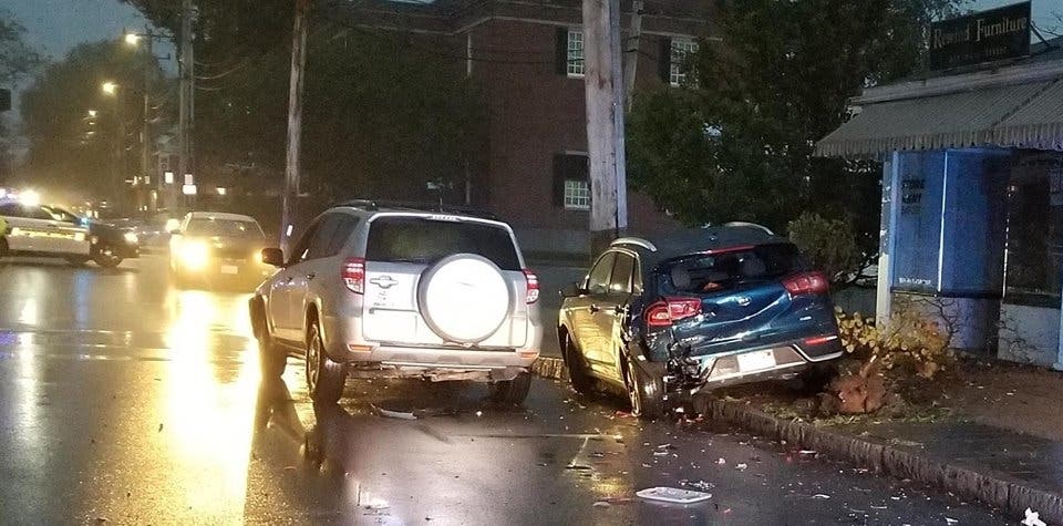 Photos: The scene of a crash in Falmouth on Main Street September 26, 2017. (Credit: Falmouth Police Department)