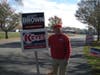 12:42 p.m.: Not far from Putnam, John J. Ford waves a placard boosting Scott Brown and Thomas Keyes.