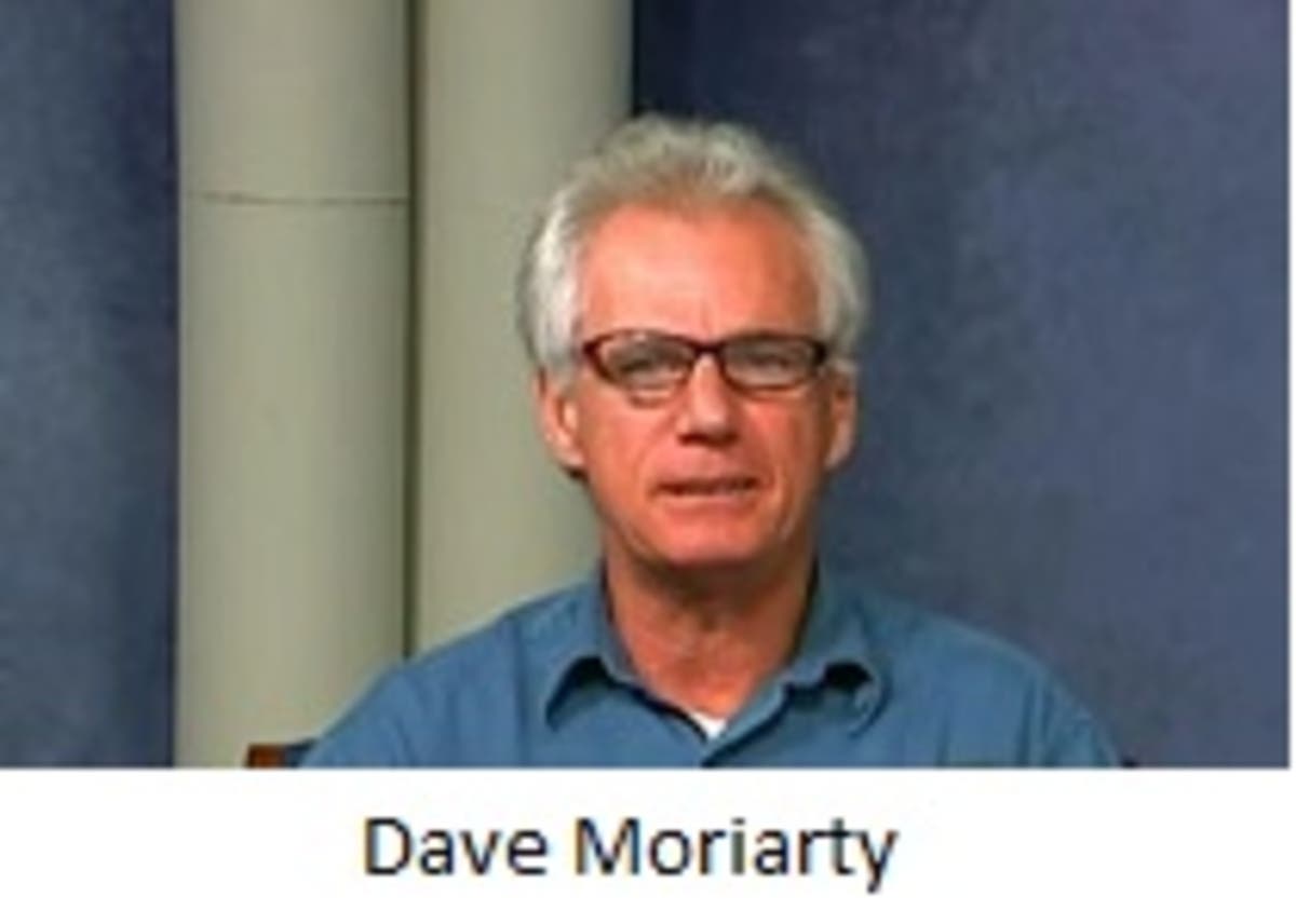 David Moriarty, resident of Town of Falmouth, talks to audience about the current status of the town owned wind turbine