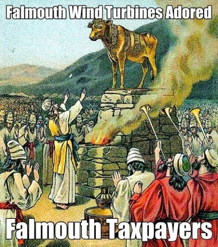 There are reasonable explanations for why Falmouth and the people began to worship the wind turbines, those explanations do not excuse the sin of taking the health and property rights of the minority.