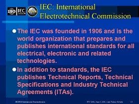 The International Electrotechnical Commission (IEC) is a worldwide organization for standardization comprising all national electrotechnical committees (IEC National Committees).