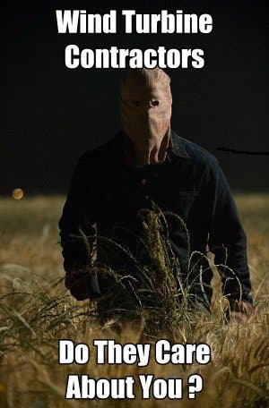 The commercial wind turbine companies would have you believe millions of people world wide all got together as Hollywood actors and came up with the same story.